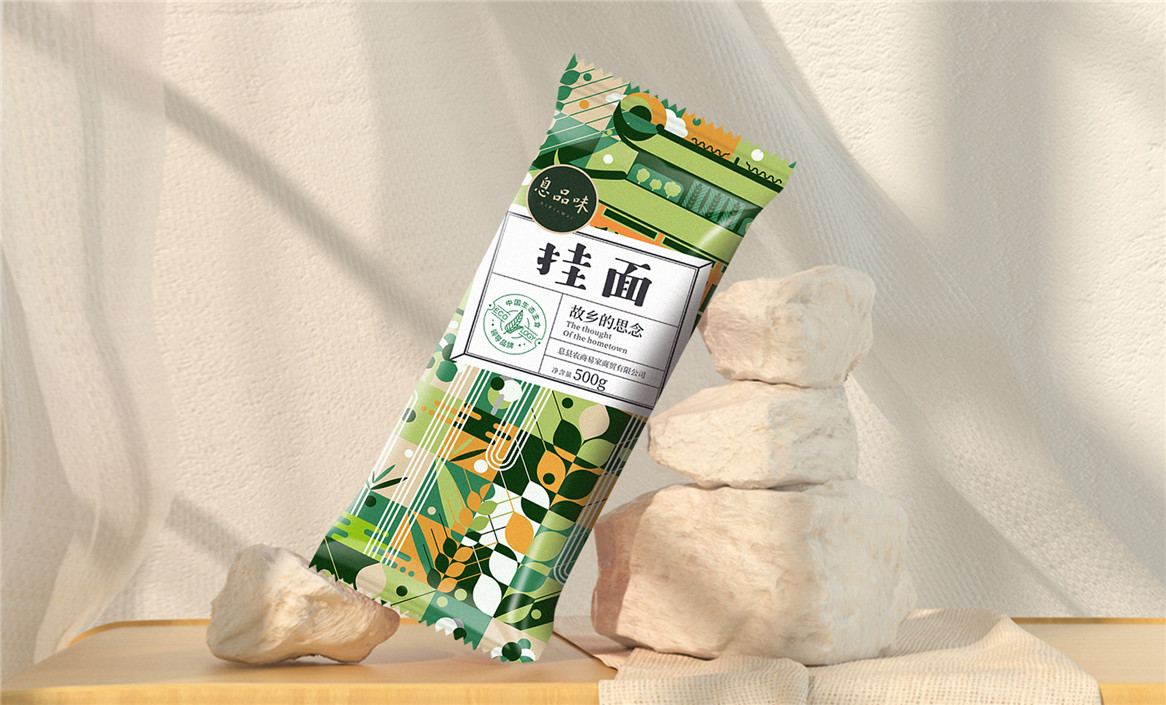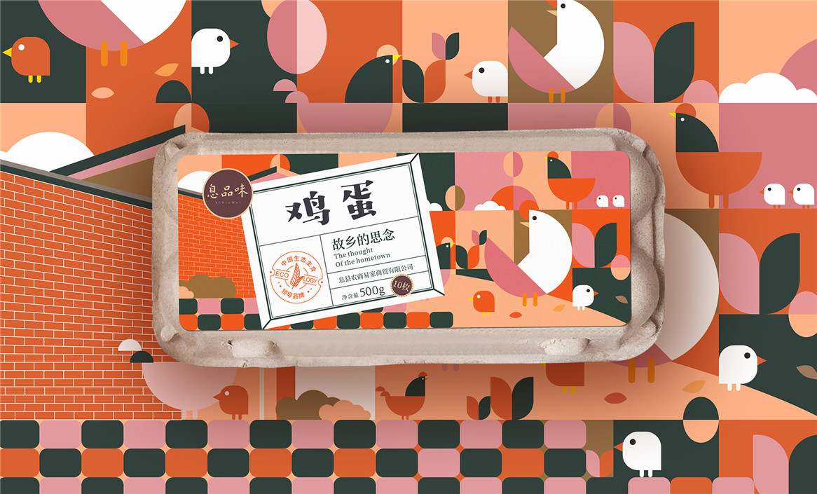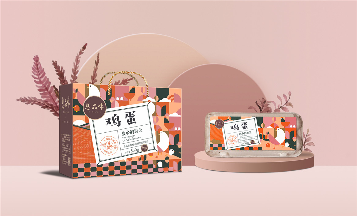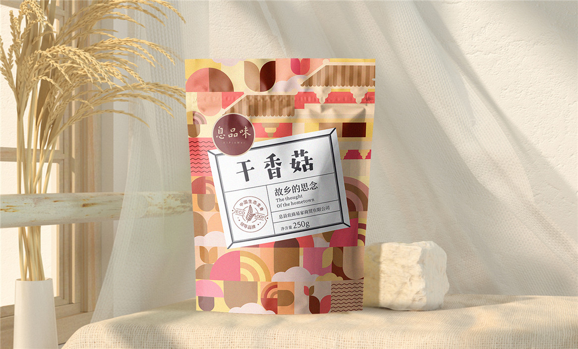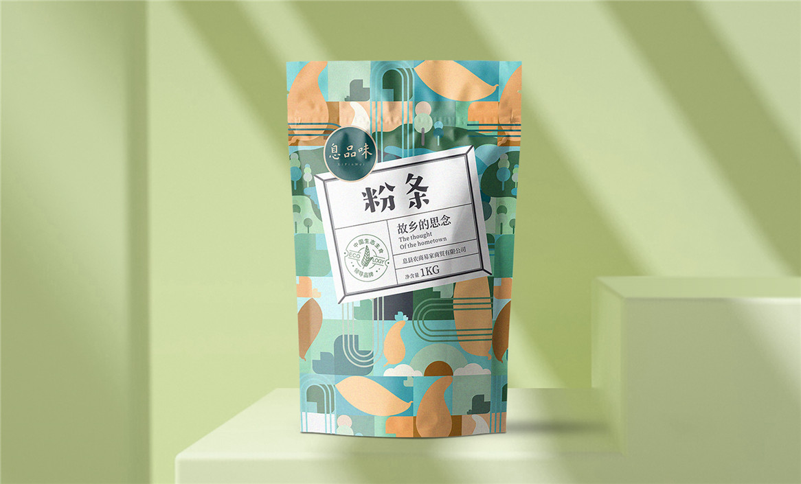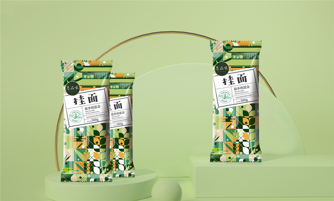 以“故鄉的思念”為品牌溝通語言,從息品味產品生態特征,地域代表文化、當地民俗民風等提取包裝設計元素,以平面幾何形態的方式把產品、產地、相關文化特征進行符號化設計視覺表達,用一種與當下農副產品市場不同的包裝表現方式設計,展現綠色新生活,迎合當下消費升級審美升級的新消費趨勢,快速建立品牌認知。